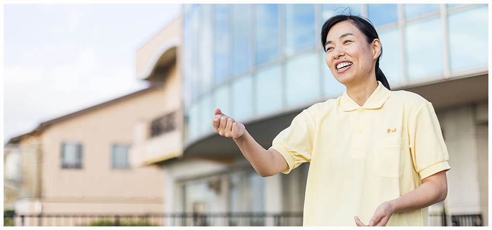 高齢者の皆さんが安心して自宅で生活できるようサービスを調整しています。働きながら取得した介護福祉士と介護支援専門員の資格、そして、様々な立場を担当することで得た視点と経験をいかし、2度の育休を経た今は居宅介護支援事業所の管理者を務めています。