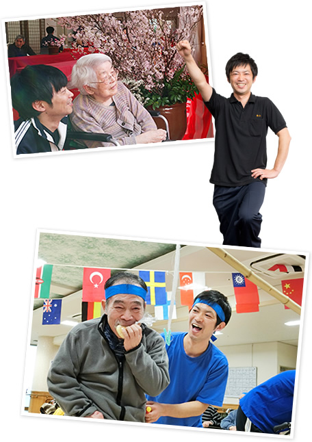 介護の現場にはめずらしく、男性スタッフが比較的多く在籍しており、男性の私にとっては非常に働きやすい環境となっています。また、ご利用者様の長所を見つけられる、いい意味で一般的な感覚があるなど、「ぜひ見習いたい」と思わせる同僚がたくさんいます。これからどんどん伸びていくであろうスタッフもたくさん入職してきており、その新鮮な考え方には、日々刺激されていますね。