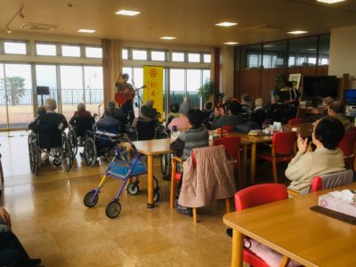 なかなか生のライブを観る機会が無い病院や施設のご利用者様に、本格的なショーを届けたいという思いで、松尾さんは全国各地で年間300回を超えるライブを開催していらっしゃいます。