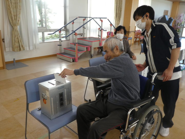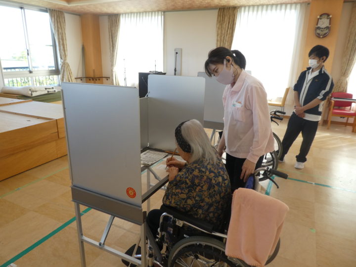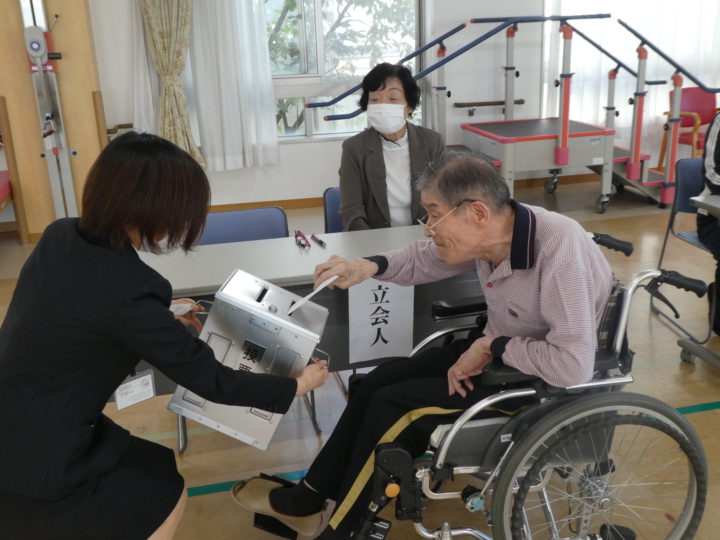 投票用紙に記入し、大切な一票をご自身で投票箱に投じていらっしゃいました。