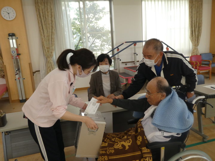 あんどの里では、事前に入所者の皆様に投票の意思を確認させていただき、15名の方が不在者投票をされました。