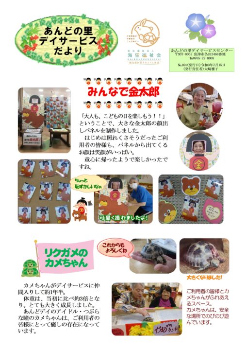 令和3年あんどの里デイサービスだより夏号を発行しました。