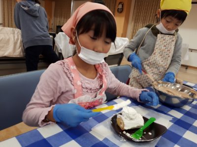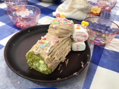 おやつ作りは、クリスマスに合わせて「ブッシュドノエル」