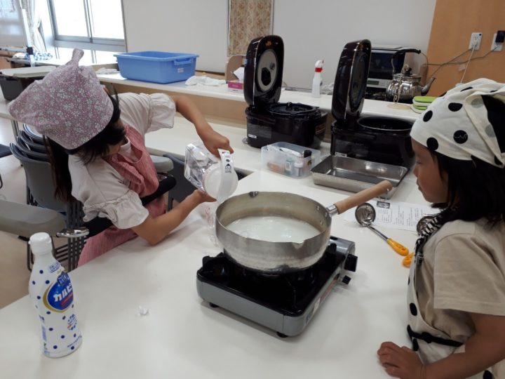 「おやつ作りチーム」は、カルピスを使って「あじさいゼリー」を作りました。
