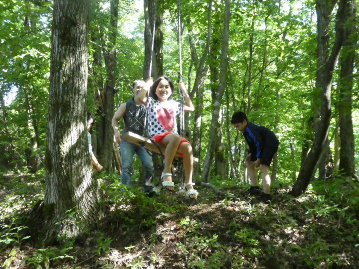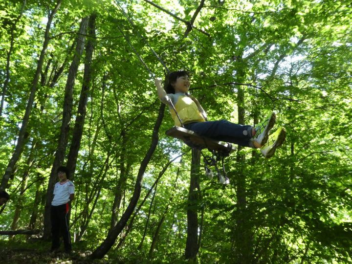 作業の後は、自然の中でブランコ!