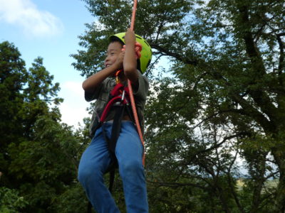 専用の安全保護具を装着して、ツリークライミングに挑戦です!