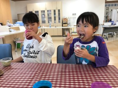 今回のおやつは「抹茶プリン」。おいしくできましたね!