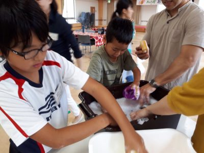 あんどの里でおやつ作りをするみんなは、フリータイムにゲームや大縄跳びを楽しみました。
