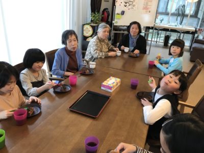 おやつができたら、入居者の皆様と一緒に「いただきま~す!」