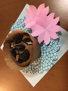 今日のおやつは、チョコレートアイスとオレオクッキーを重ねて作ったプチケーキ。