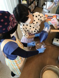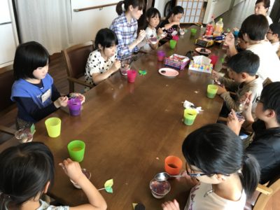 毎回人気のおやつ作りでは、「紫陽花ゼリー」を作りました。