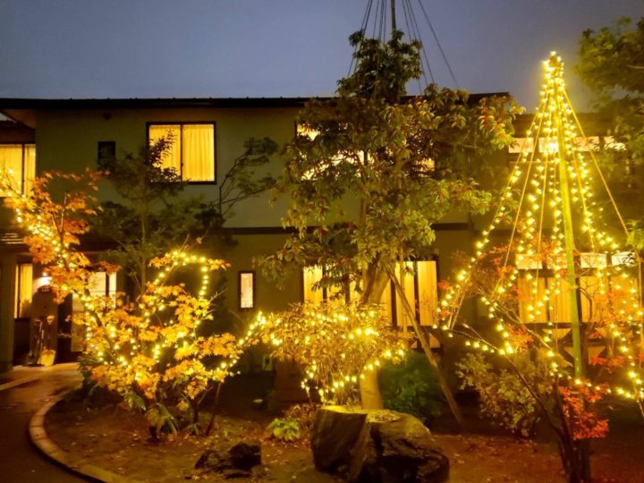 富山市にある花みずき弐番館で、庭木にイルミネーションを飾りました。