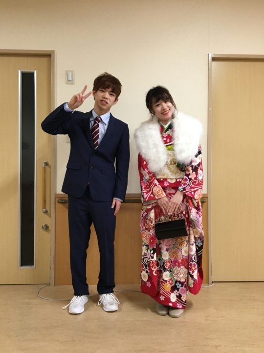 その中の2人が、式典後にその晴れ姿を見せに来てくれました(*^-^*)。