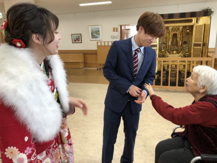 いつもと違った雰囲気の二人をご覧になり、入所者の皆様も思わず笑顔に。