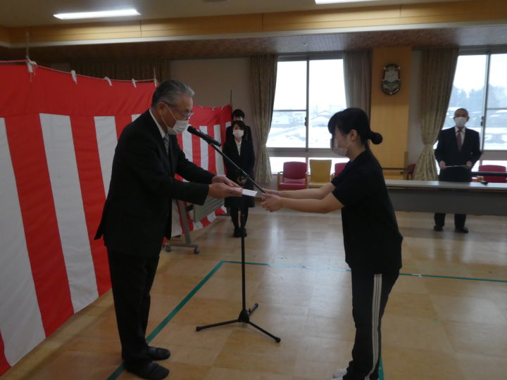 また、今年度成人を迎えられる2名の職員へ、親睦会よりお祝いを贈呈しました。
